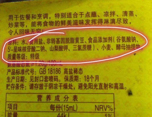 【配 料】水、非转基因黄豆、小麦粉、食盐